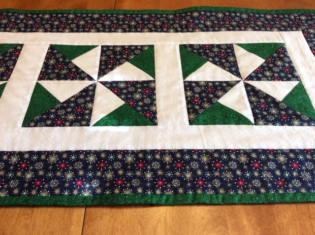 Table Runner - Navy/Green Double Pinwheel